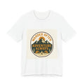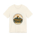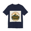 Soft, breathable tee with a vintage outdoor badge printed on the chest. The warm, earthy design — mountains, tents, and a rising sun — reads like a small promise: wander often, adventure always. Lightweight Airlume cotton feels good against the skin on long days of travel or layered under a flannel by the campfire. The retail fit and crew neckline keep the silhouette neat for town errands, trailhead photos, or backyard gatherings. Thoughtful construction (side seams, shoulder tape, ribbed collar) keeps the shirt holding its shape after many wears and washes. REACH-certified materials and a tear-away label keep comfort and safety in mind so you can focus on routes, maps, and morning coffee before setting out.