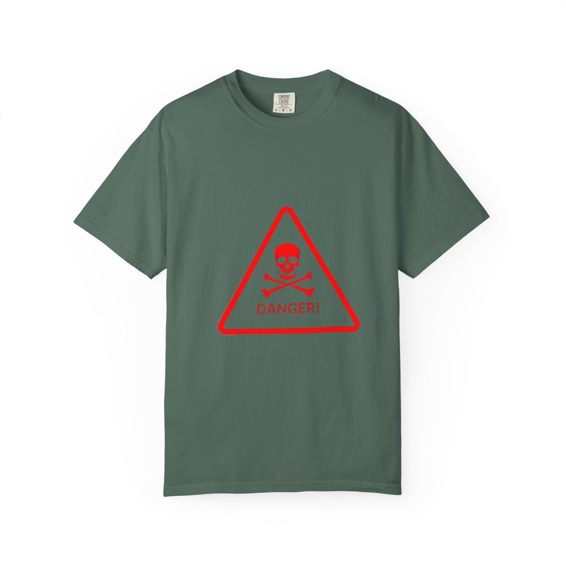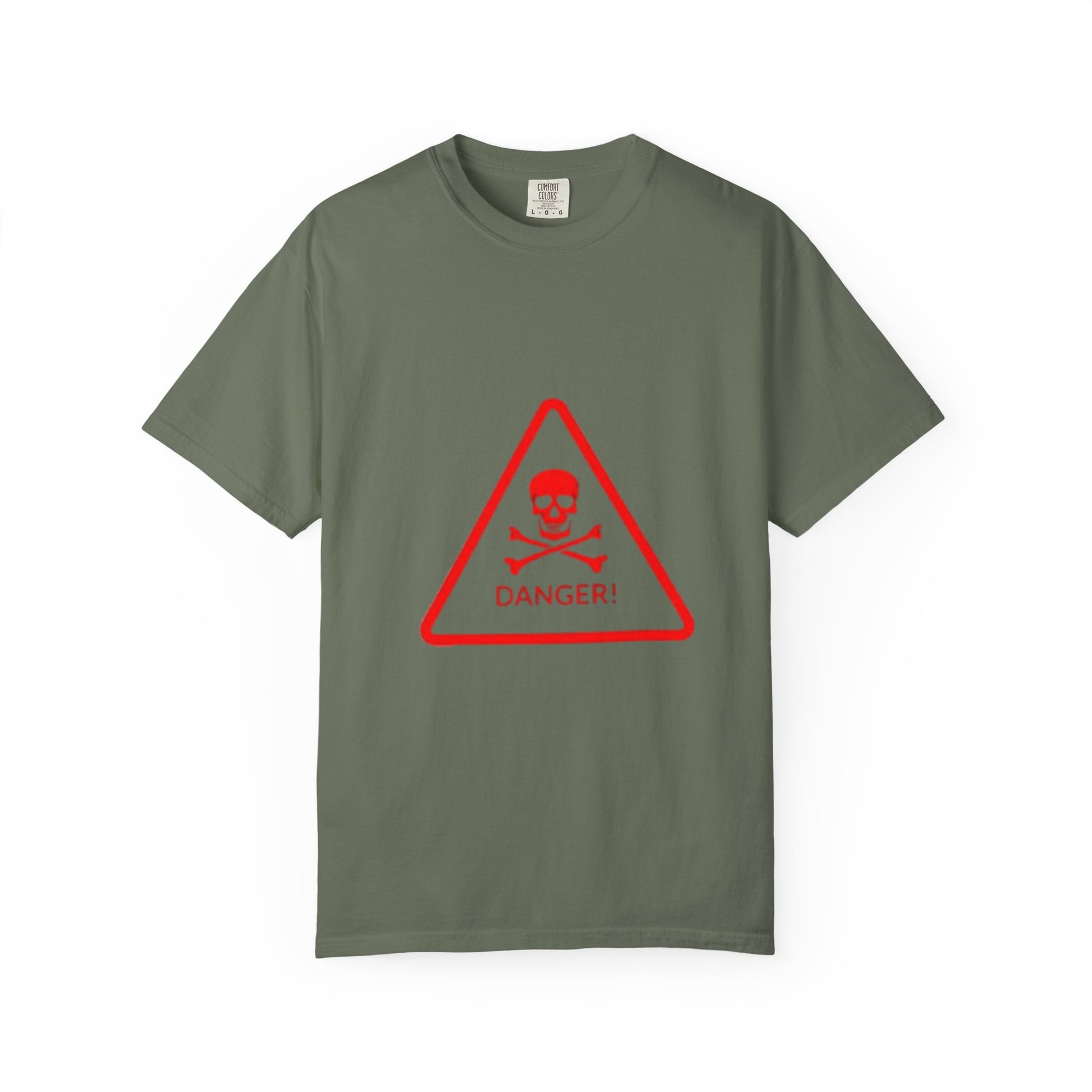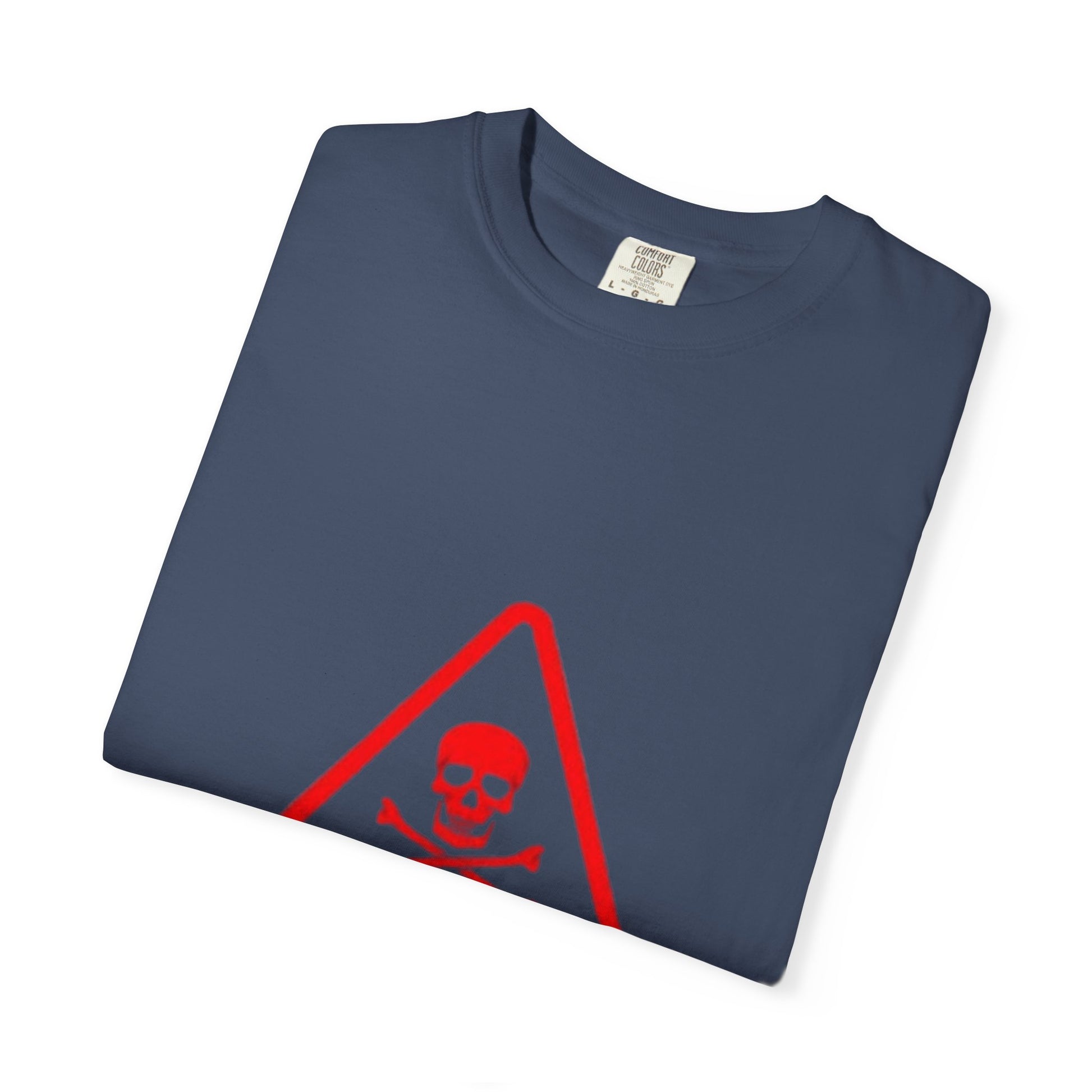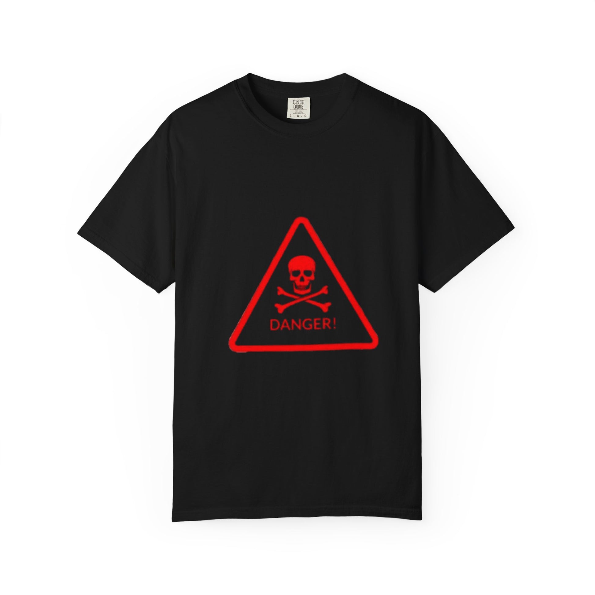 Danger Skull Warning T-Shirt — Red Hazard Sign Graphic Tee