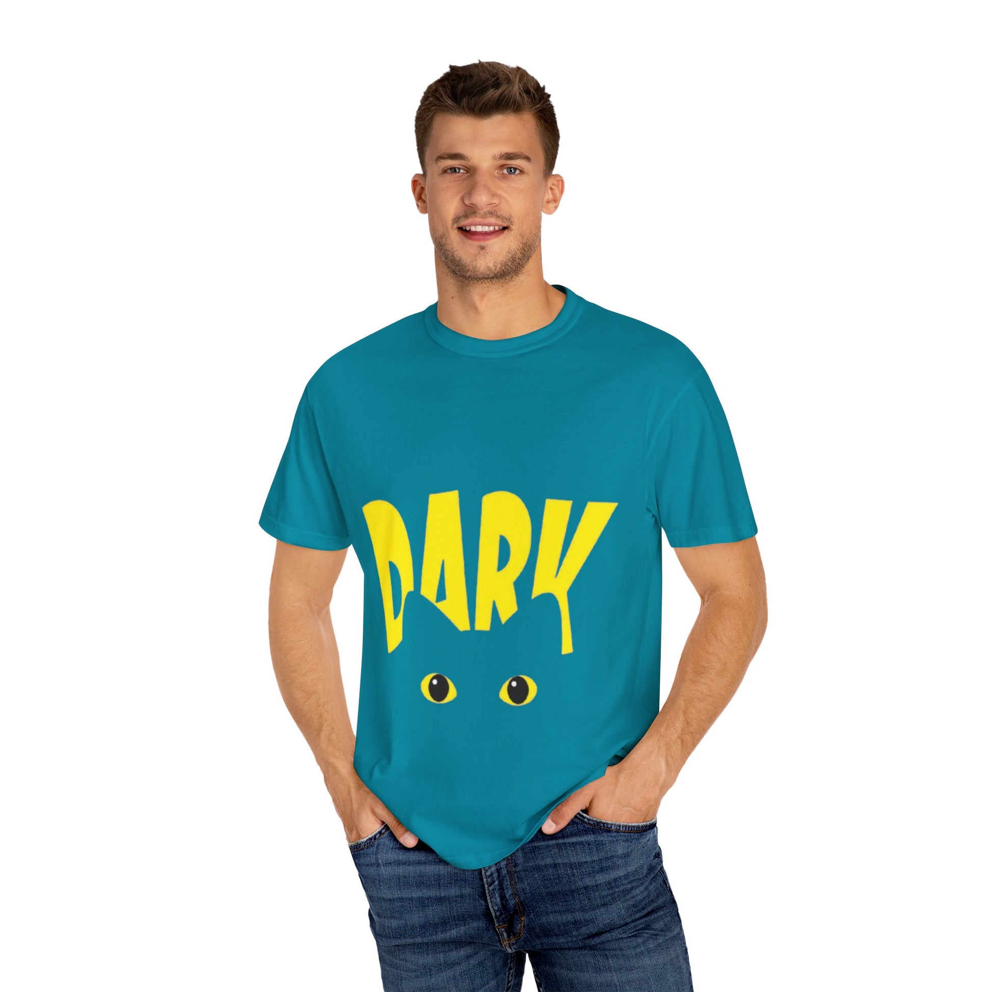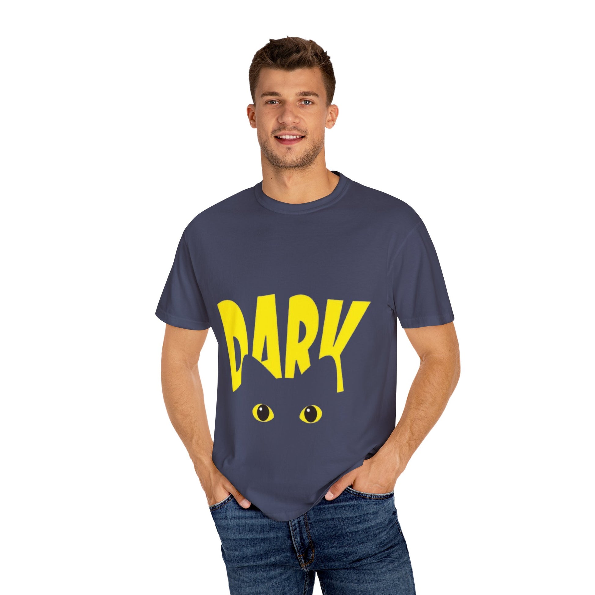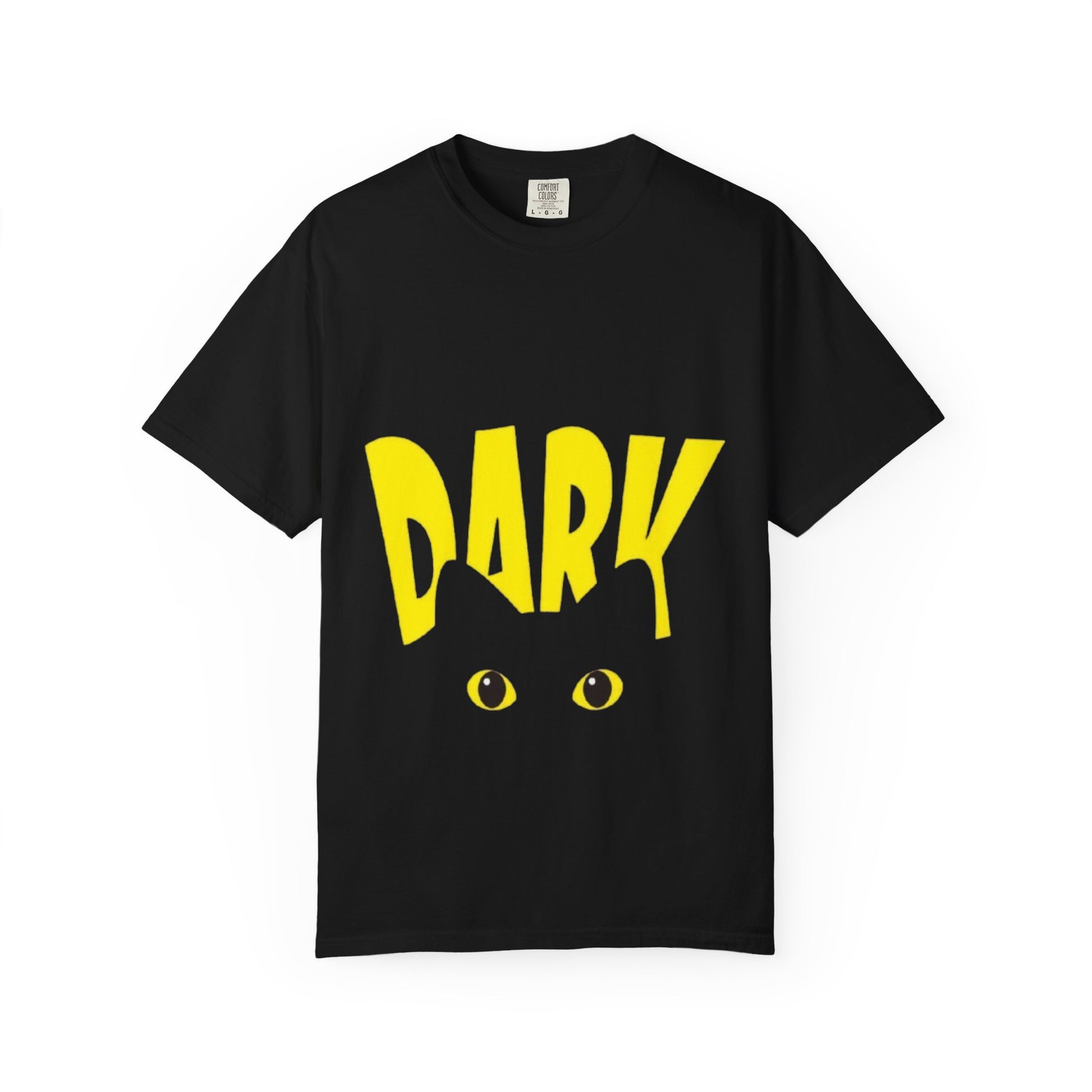 Dark Cat T-Shirt — Graphic Halloween Tee with Yellow Cat Eyes