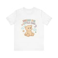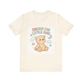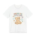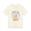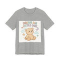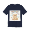 Soft, light, and quietly sweet—this tee carries a gentle bedtime mood. A cuddly bear sits among stars, clouds and a crescent moon, with “Dream Big Little One” arching above in pastel tones. The breathable 100% Airlume combed cotton makes it easy to layer over pajamas or under a cardigan, while the retail crew neckline keeps the look tidy for family photos or nursery story time. Thoughtfully built with side seams, shoulder tape and a ribbed knit collar so the shape stays neat wash after wash. Wear it for slow mornings, sleepy afternoons, or as a cozy hand-me-down that still feels fresh.
