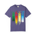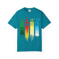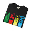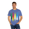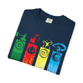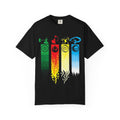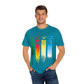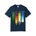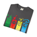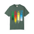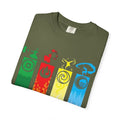 This garment-dyed tee channels elemental energy into everyday wear. Soft, lived-in cotton and a relaxed cut make it feel like an old favorite from day one. The front artwork strips four vertical totems — earth, fire, spirit, and water — rendered in bold, slightly distressed colors that sit naturally on the olive fabric. Wear it on trail days, casual meetups, or while sketching maps and playlists; it settles into slow afternoons, campfire nights, and travel-ready mornings. The muted dye and tubular construction give the shirt a crafted, sustainable-minded vibe. It’s a straightforward piece for people who like subtle symbolism, outdoorsy aesthetics, and clothing that ages gracefully with use.