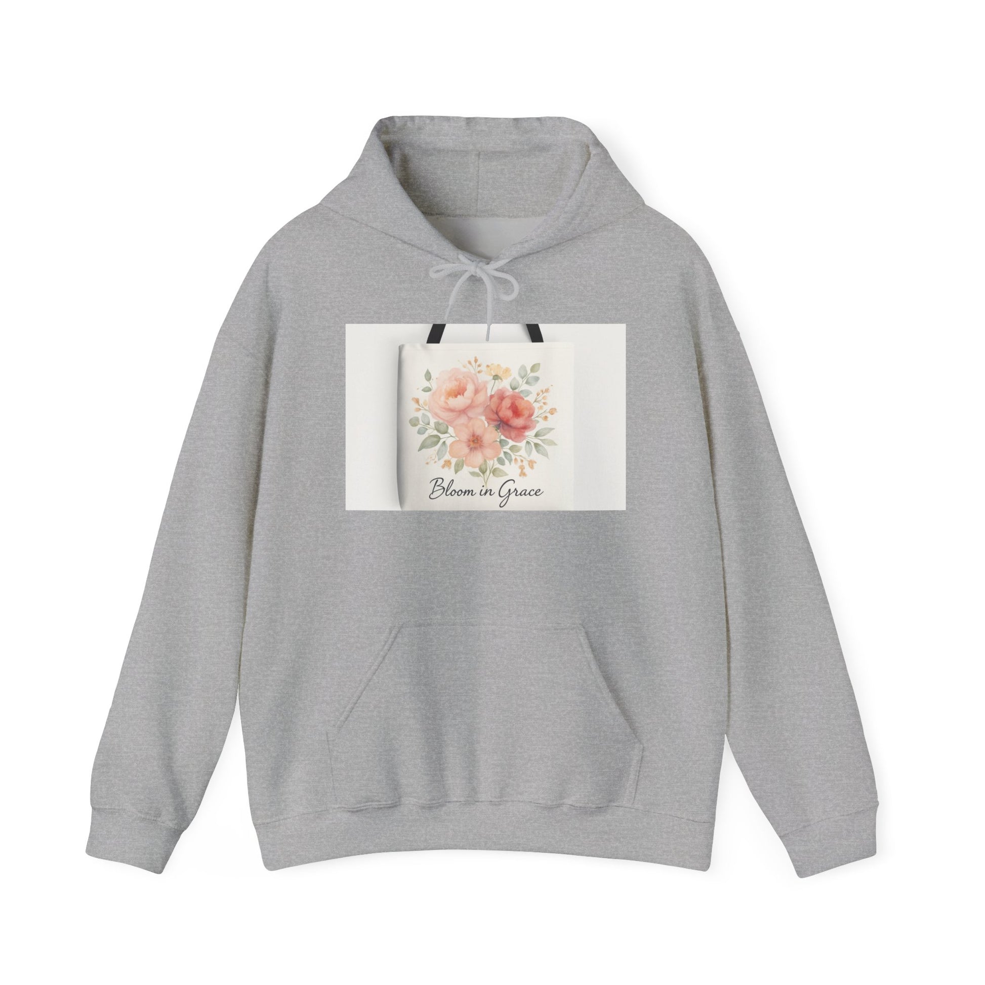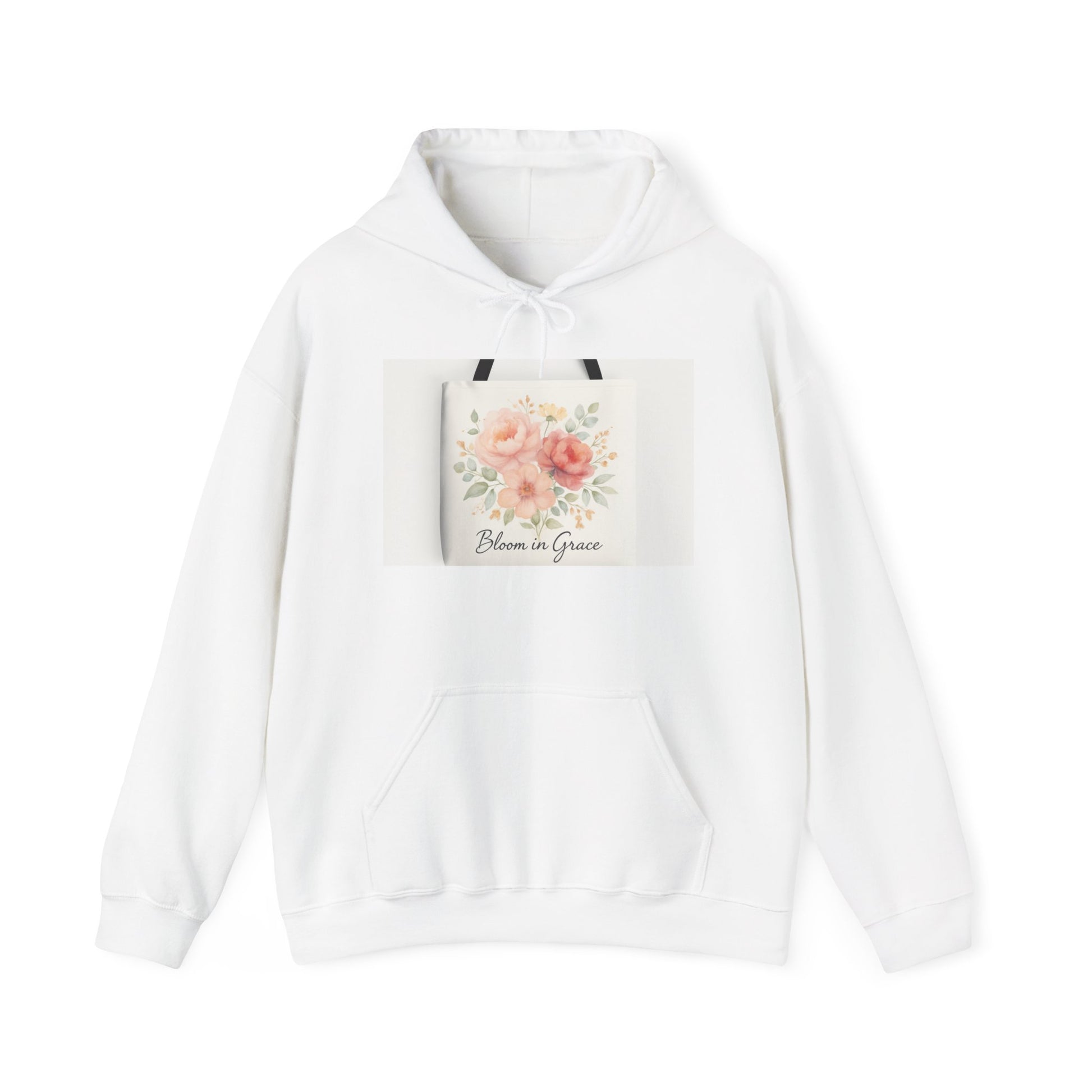 Floral Tote Illustration Hoodie — "Bloom in Grace" Cozy White Pullover