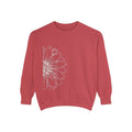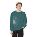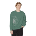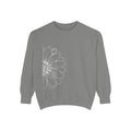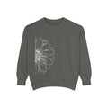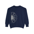 This relaxed garment-dyed sweatshirt feels like a quiet morning in a wildflower patch. The muted charcoal fabric and delicate half-daisy print sit slightly off-center, so it reads like something worn by someone who prefers thoughtful details over loud logos. Medium-heavy, ring-spun cotton blend drapes softly across the shoulders and holds its shape thanks to ribbed collar, cuffs, and hem. Subtle back neck twill and a half-moon neck patch add durability and comfort. It pairs with worn-in jeans or pajama pants, layering easily under a coat or over a tee for cooler evenings spent walking, reading, or sipping something warm.