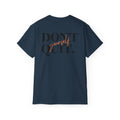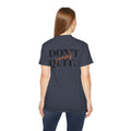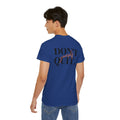This clean, sturdy tee slips into everyday life and holds its ground. The medium-weight cotton has a slightly vintage hand that softens with wear, while a roomy, classic cut gives relaxed movement without looking sloppy. The back features a confident typographic message that reads like a quiet pep talk — bold letters grounded by a softer script — so the shirt reads as both plain and personal. Wear it on long workdays, early-morning runs, or slow weekends: it layers easily under a jacket, pairs with worn-in jeans, and keeps its shape after many washes. The tear-away label and stable shoulder tape keep comfort front and center; the natural color option carries tiny flecks that emphasize an honest, lived-in look.