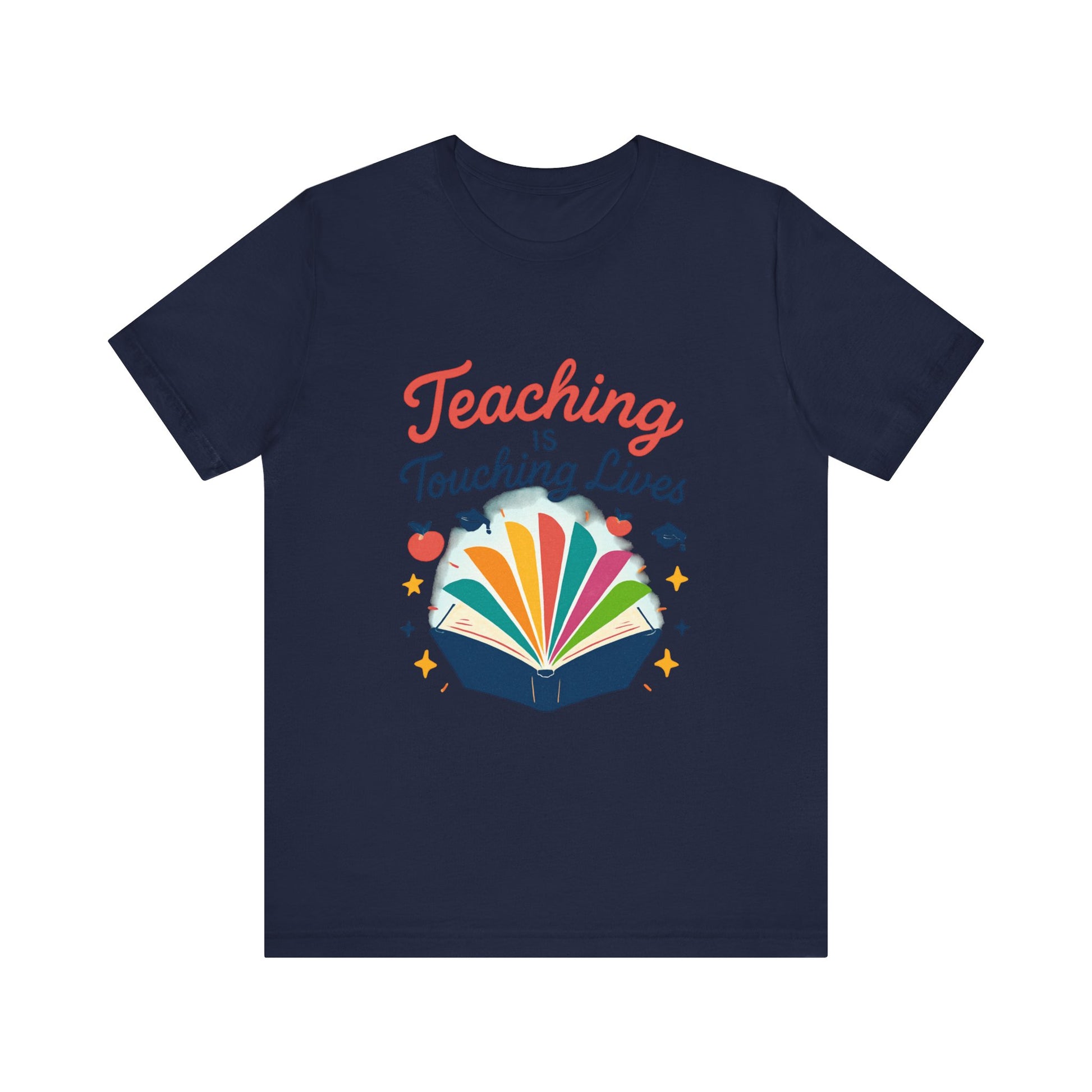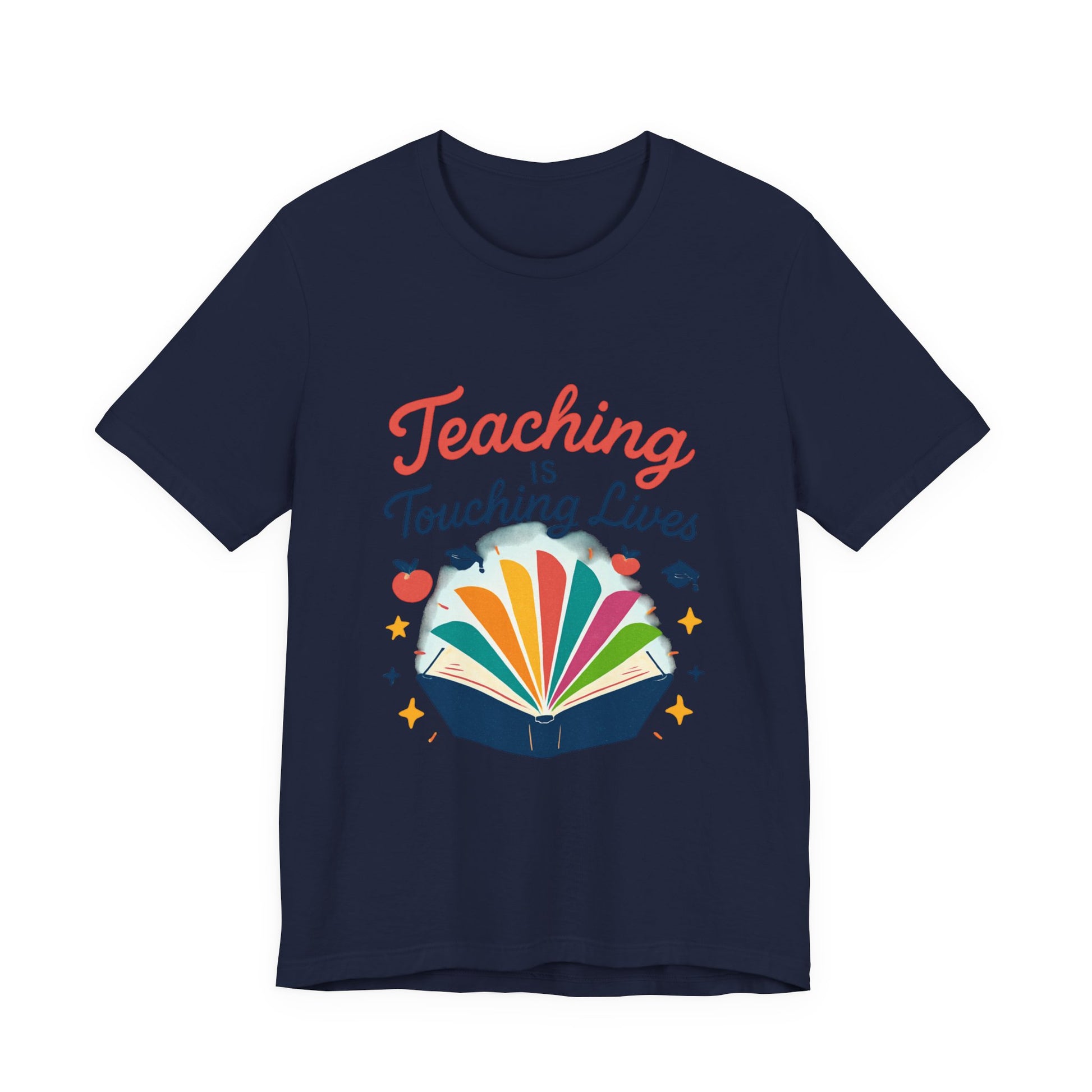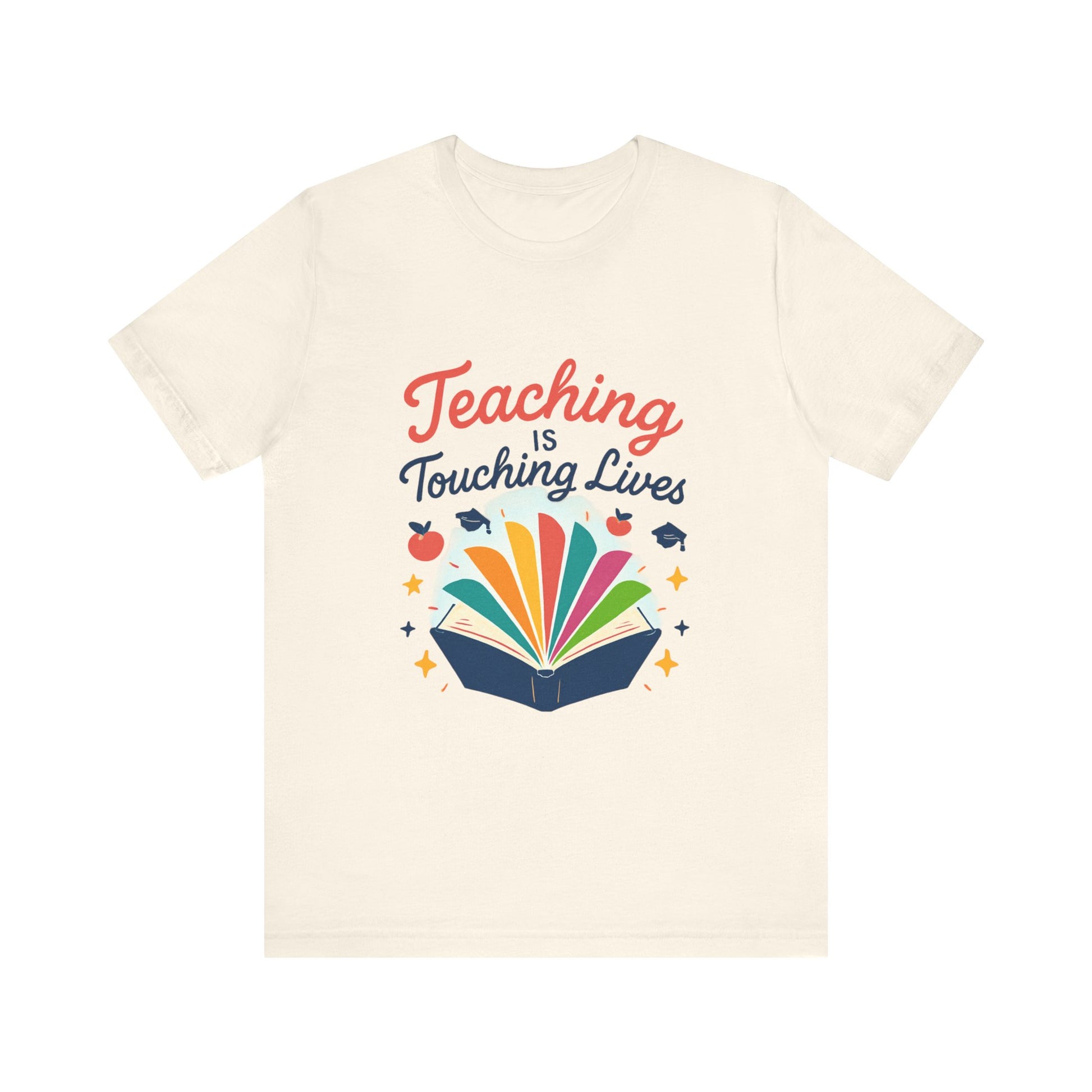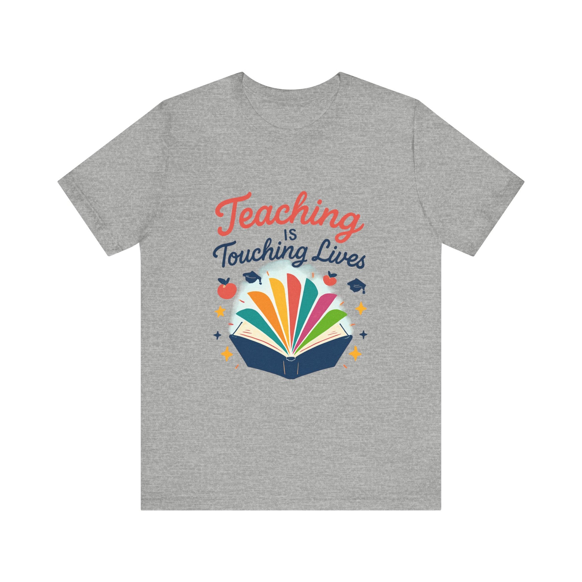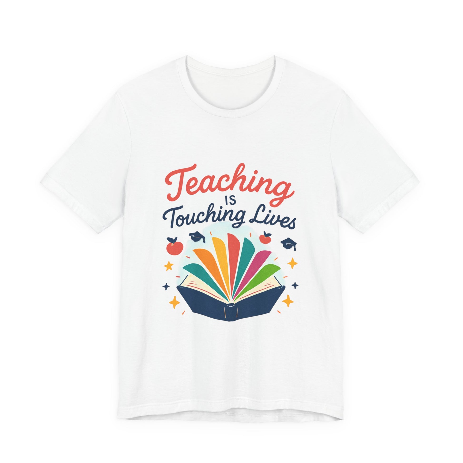 Soft, breathable, and thoughtfully designed for the educators who bring stories to life. This lightweight jersey tee features a bright, joyful print of an open book with colorful pages and the uplifting phrase “Teaching is Touching Lives.” It sits neatly at the crew neckline and drapes with a modern retail fit — easy to layer under cardigans or wear solo during parent-teacher nights, classroom celebrations, or casual school days. The spirited design reads from across the room, adding warmth and personality to lesson plans, staff meetings, and weekend errands. Durable construction details like side seams, shoulder tape, and a ribbed knit collar keep the tee looking polished after many washes. The tear-away label and soft Airlume combed cotton make it comfortable for long school days. For teachers who collect quiet moments of impact, this shirt feels like a badge of kindness and a small, wearable celebration of the students they lift.