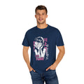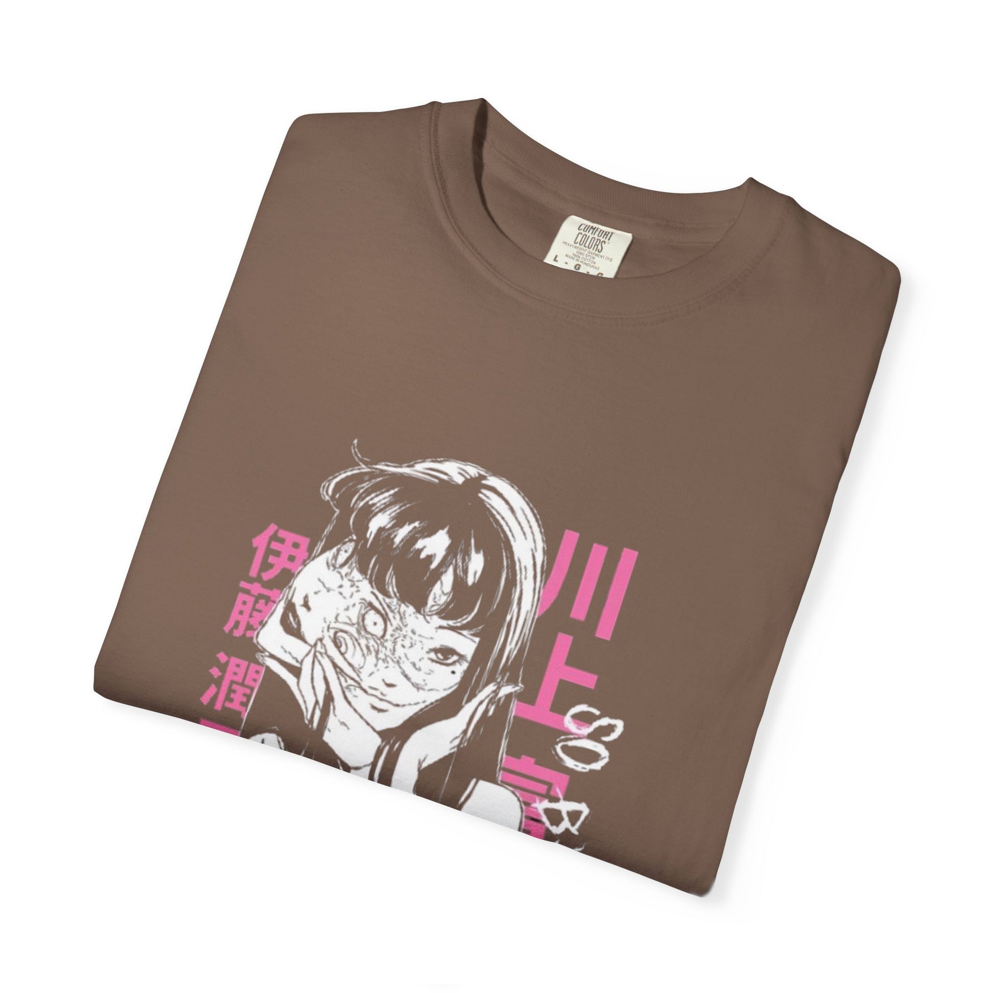 This garment-dyed tee pairs vintage softness with bold anime-inspired attitude. The muted brown fabric is washed after sewing for a lived-in hand, while the front artwork — a melancholic manga girl in pink and white with stylized Japanese characters — reads like a page ripped from late-night zines. Wear it with worn jeans and combat boots or layered under an oversized jacket. It settles into your rotation quickly: comfortable, quiet, and a little defiantly nostalgic. Shows character without shouting, and the relaxed cut gives room to move and to make the look your own.